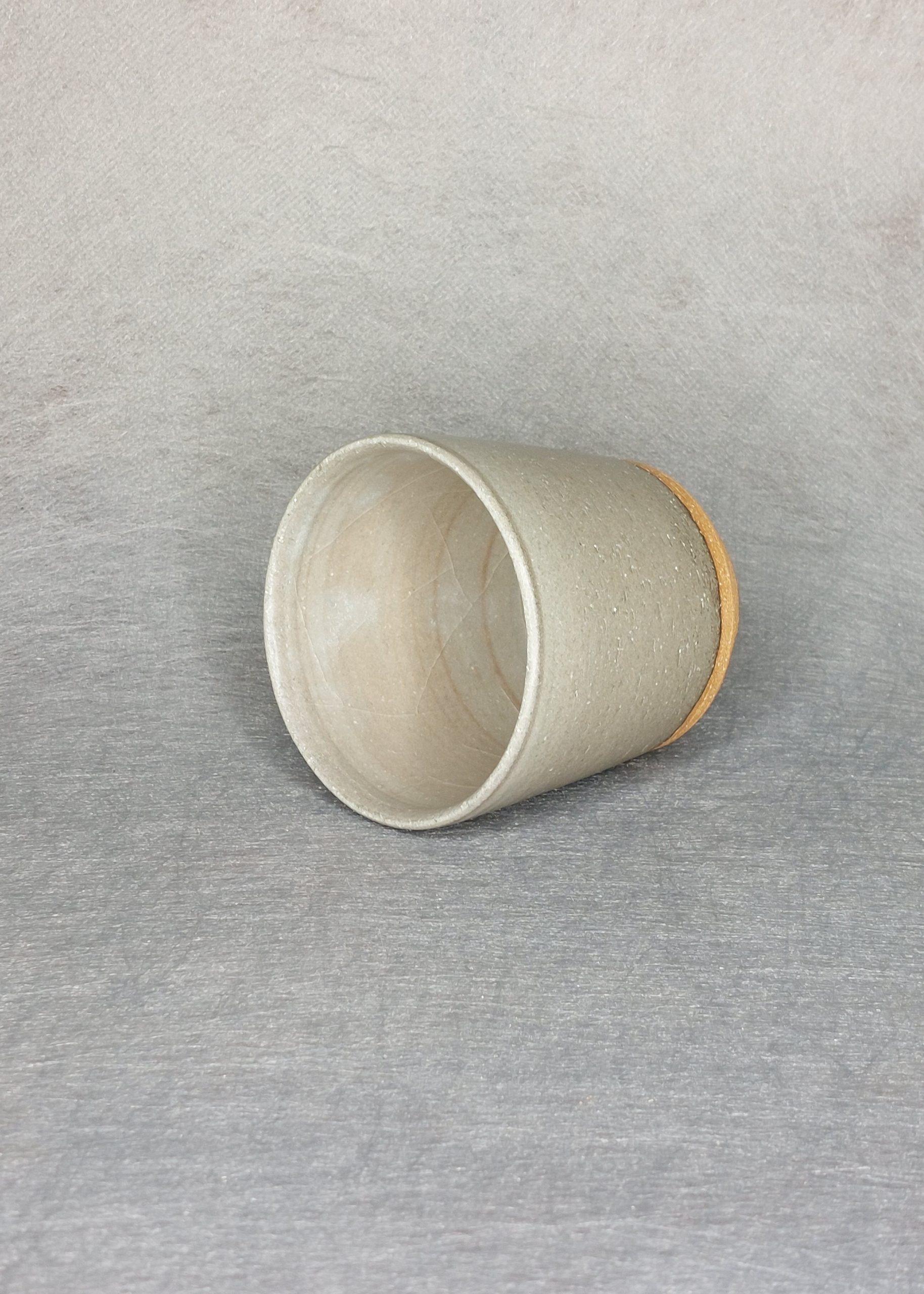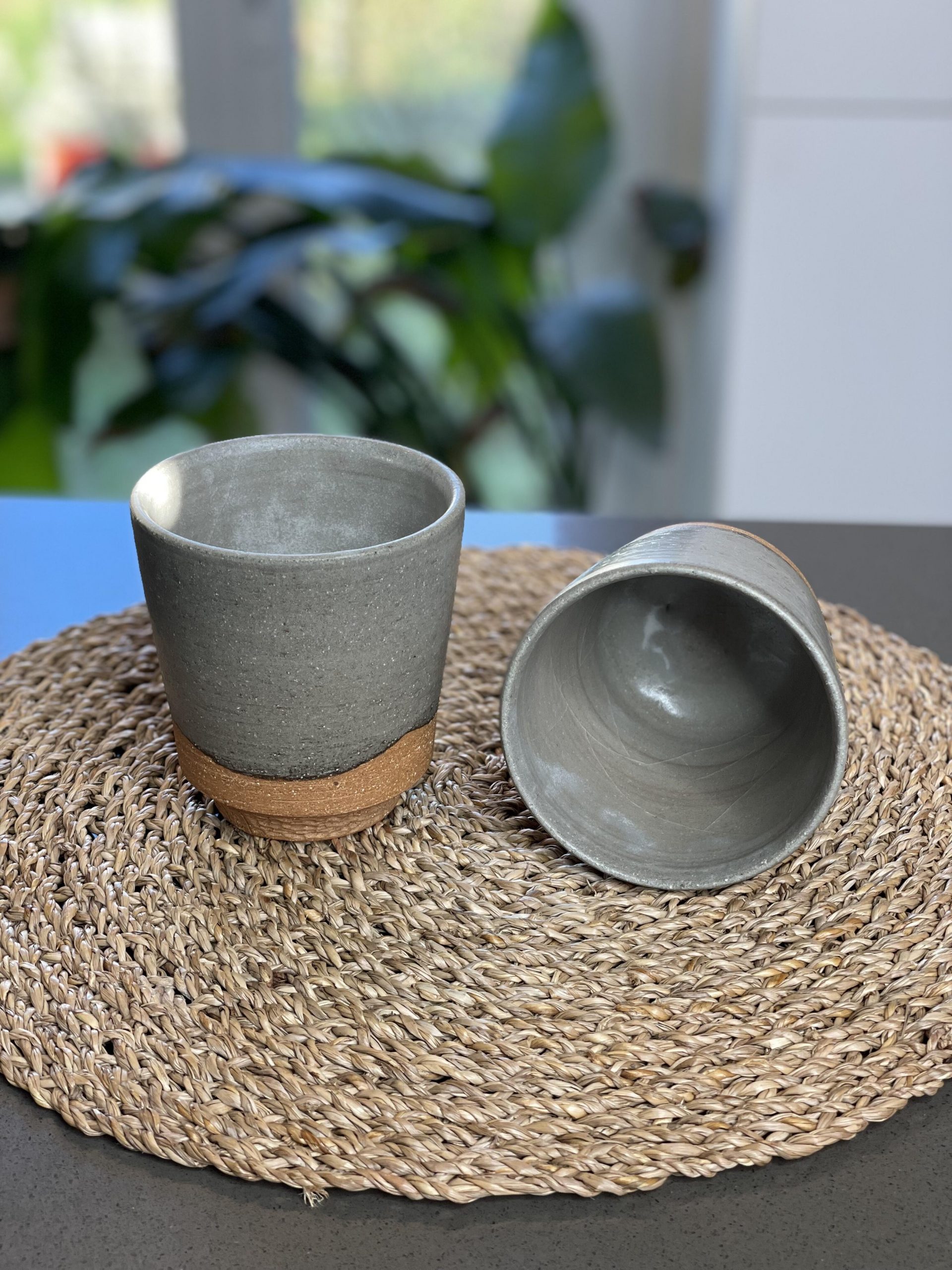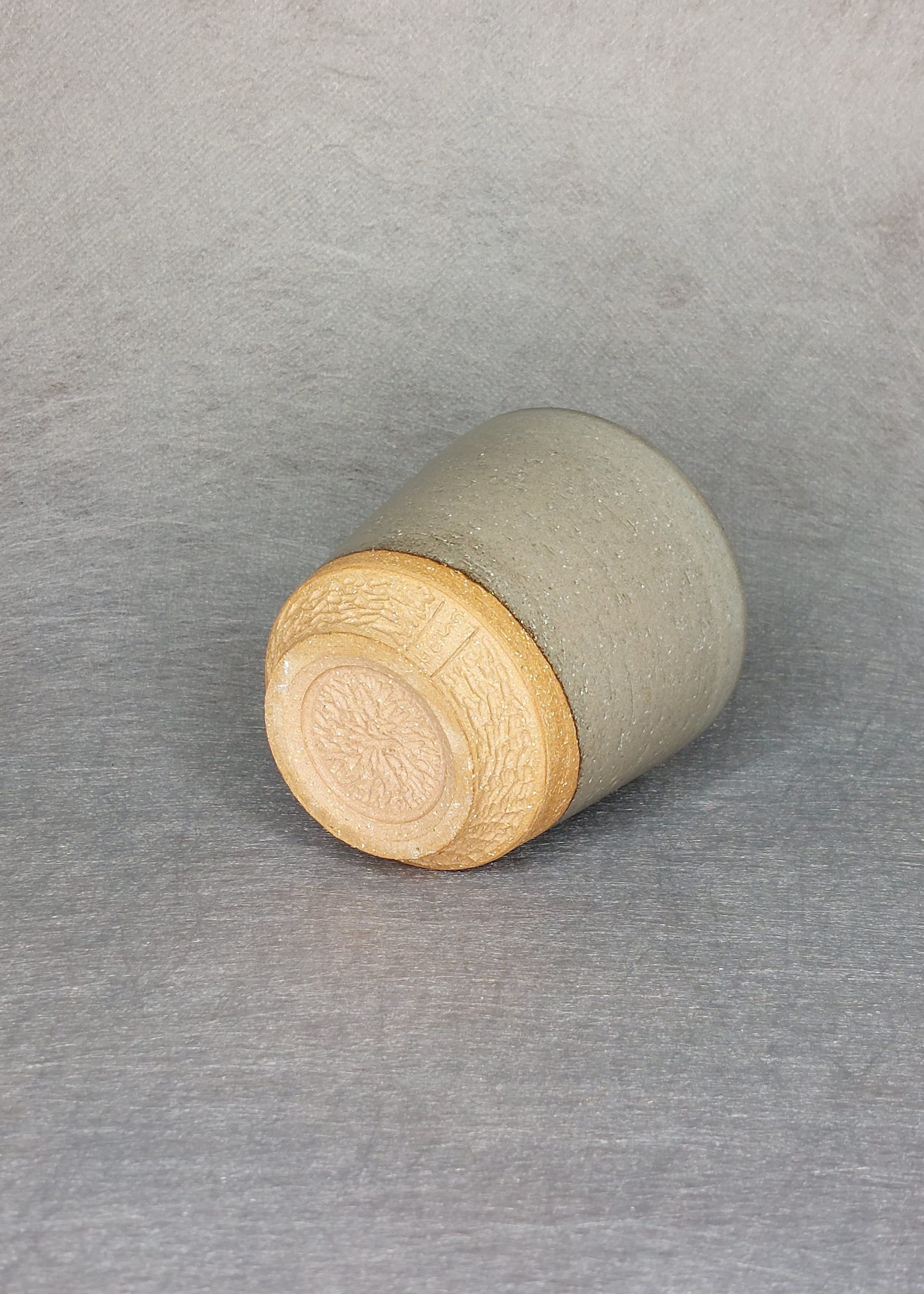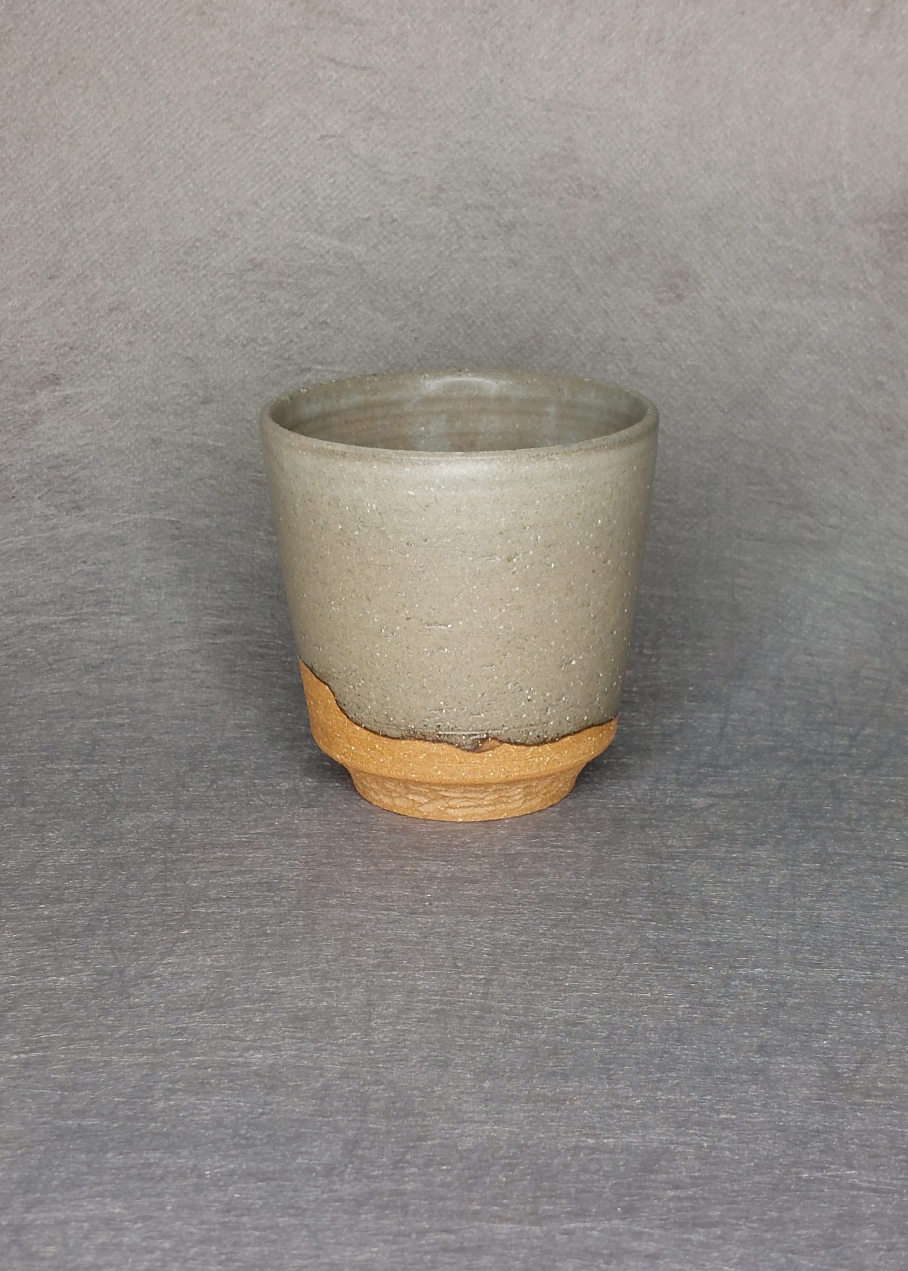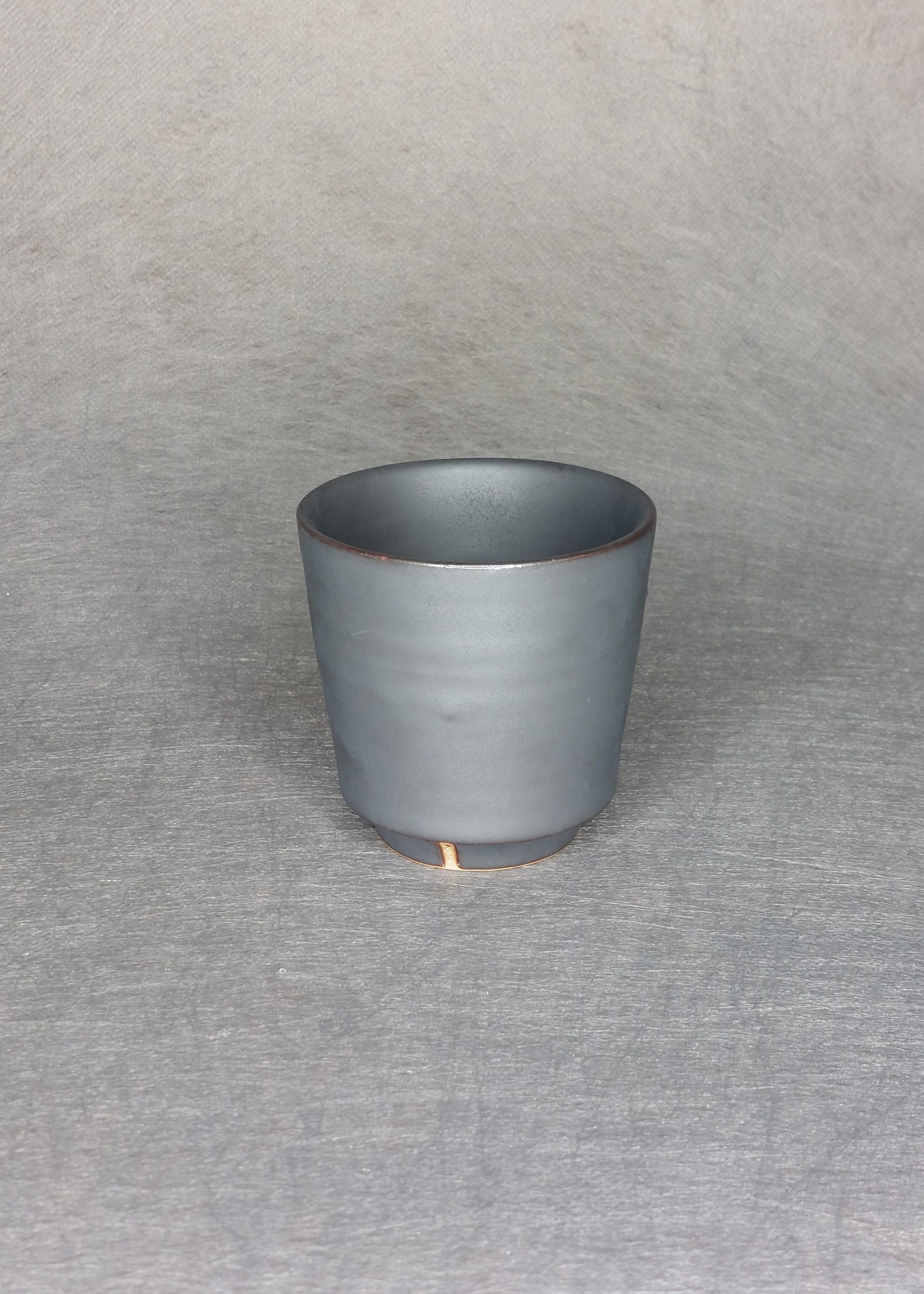Mug fabriqué en grès de treigny, émaillé d’un gris brillant, avec une base et un pied texturés lui donnant ainsi une silhouette élégante. L’émail est appliqué sur toute la pièce et nécessite que votre œil plonge à l’intérieur pour en observer tous les détails.
