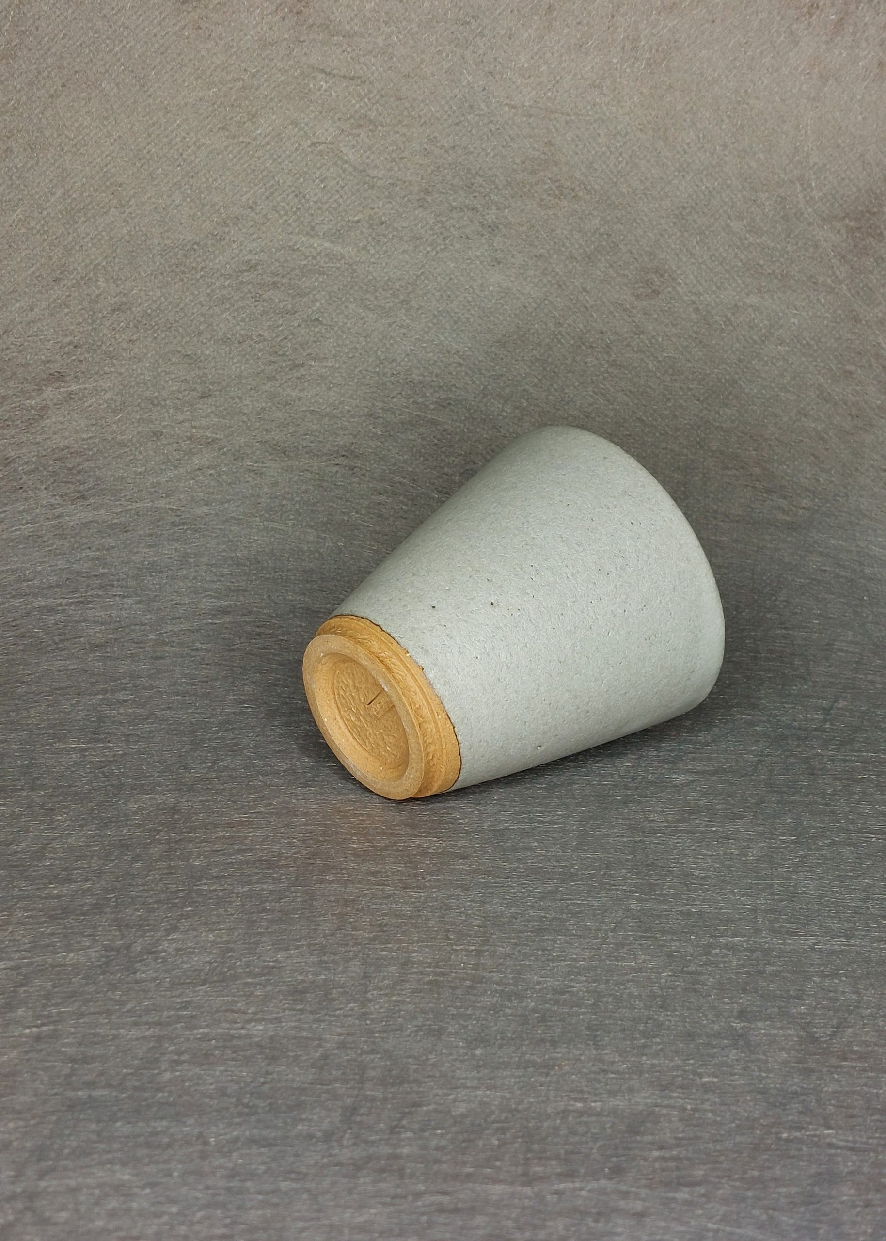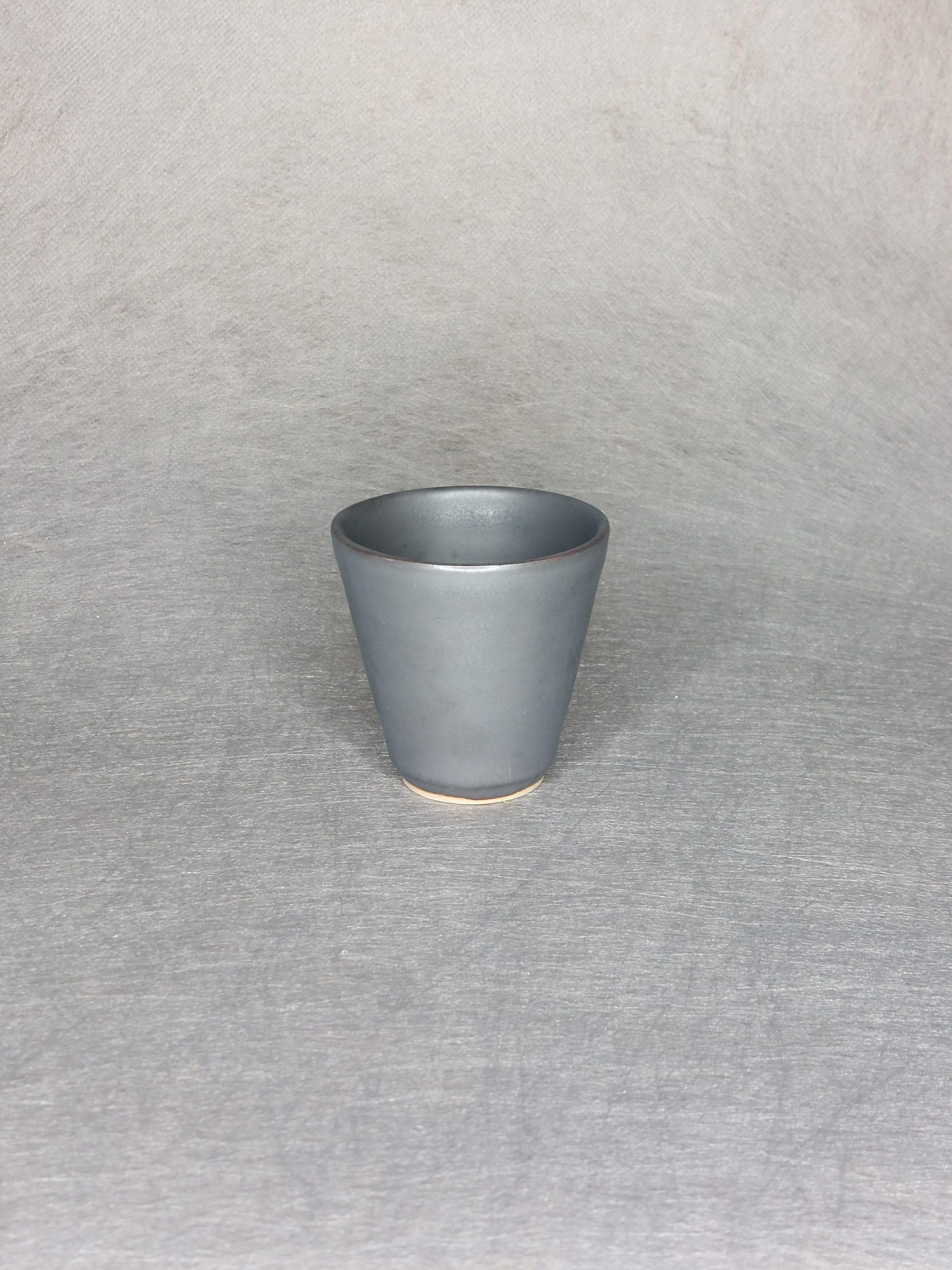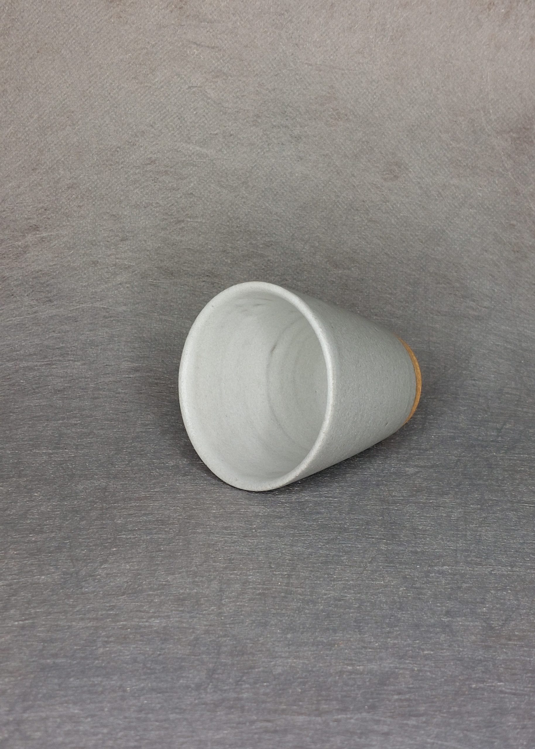 Tasse fabriqué en grès de treigny, émaillé d’un gris brillant, avec une base et un pied texturés lui donnant ainsi une silhouette élégante. L’émail est appliqué sur toute la pièce et nécessite que votre œil plonge à l’intérieur pour en observer tous les détails.