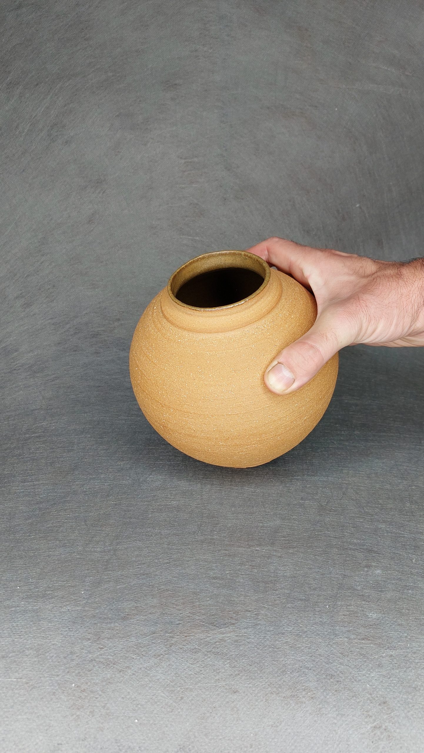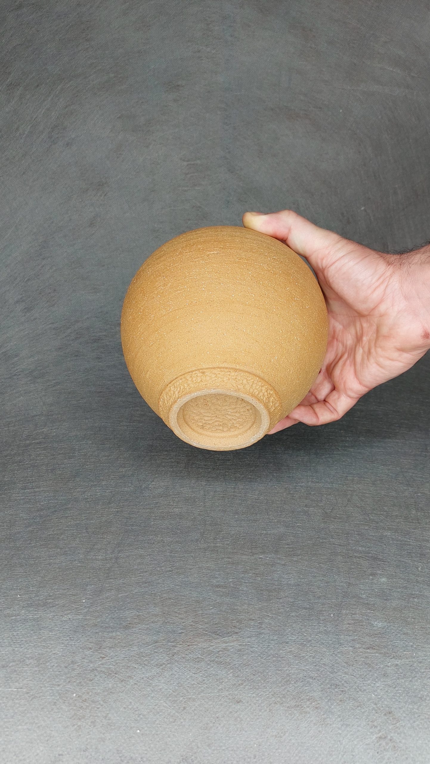 Vase fabriqué en grès de treigny chamotté, avec une application de barbotine sur le corps de la pièce. Sa base et son pied sont texturés lui donnant ainsi une silhouette élégante. L’émail est appliqué avec soin uniquement à l’intérieur du vase nécessitant que votre œil s’y plonge pour en observer tous les détails.