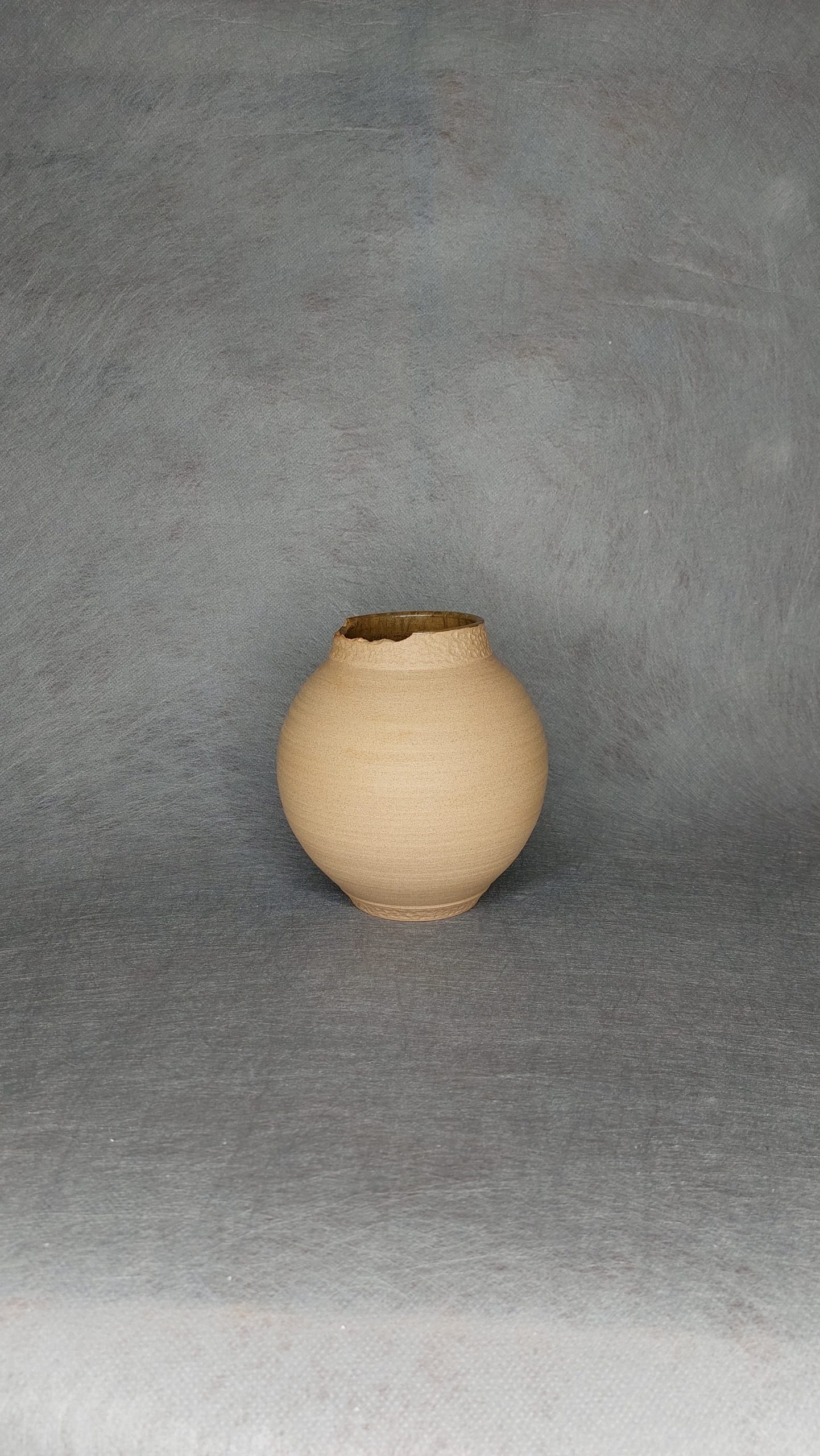 Vase fabriqué en grès de treigny chamotté, avec une application de barbotine sur le corps de la pièce. Sa base et son pied sont texturés lui donnant ainsi une silhouette élégante. L’émail est appliqué avec soin uniquement sur le col et à l’intérieur du vase nécessitant que votre œil s’y plonge pour en observer tous les détails.
