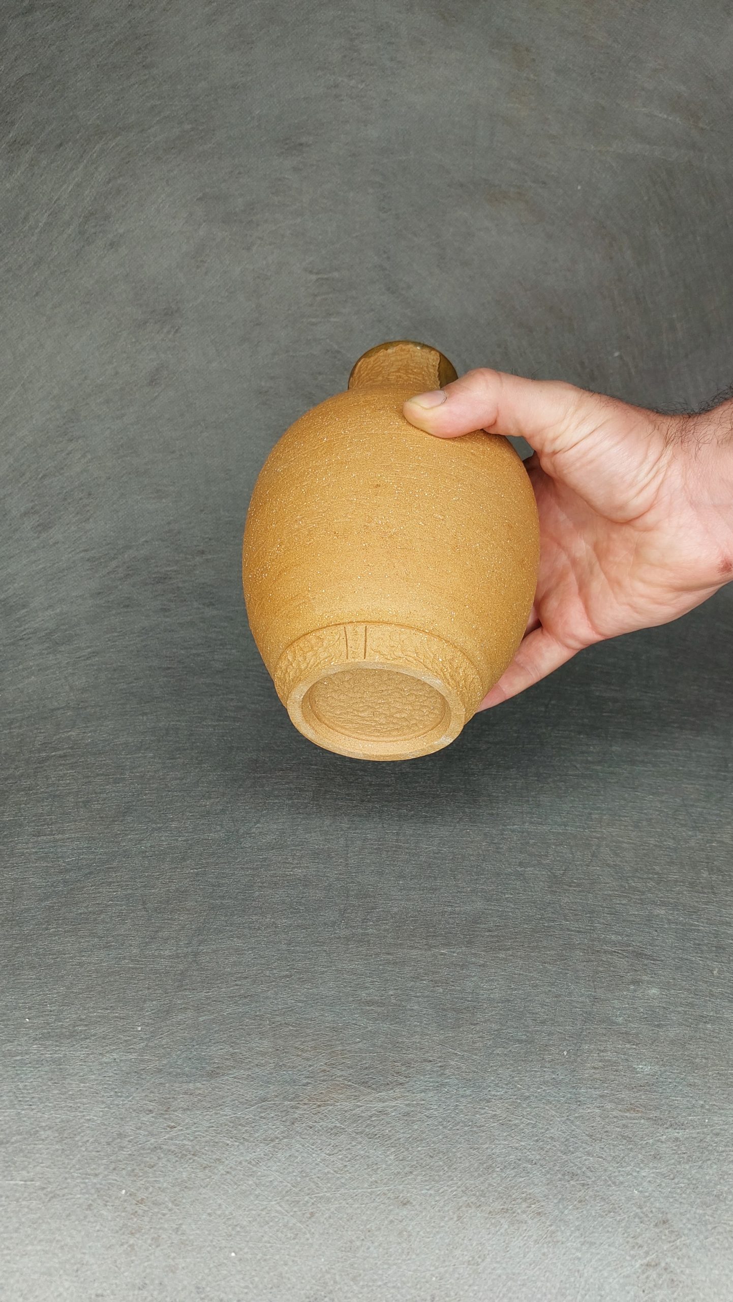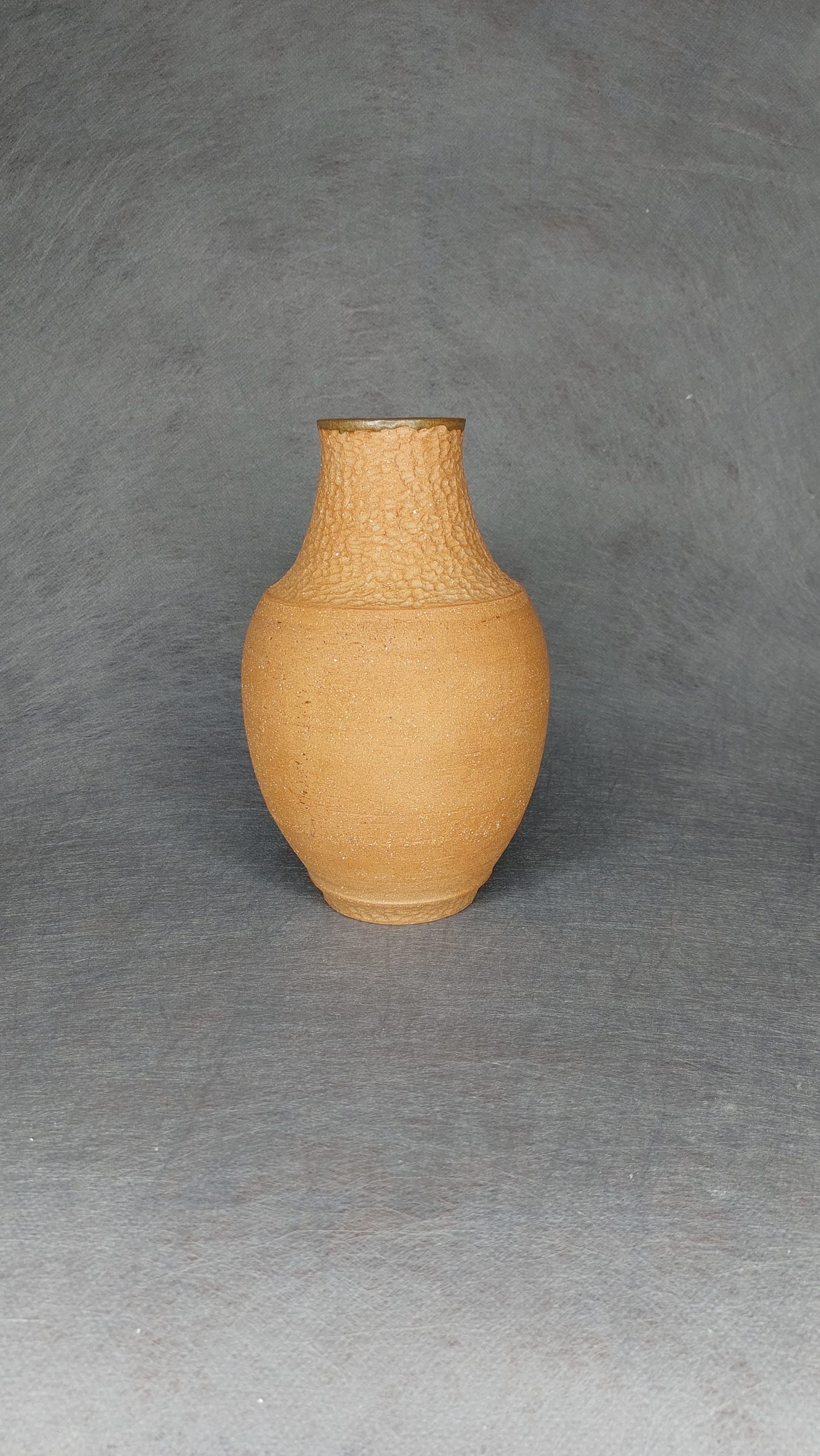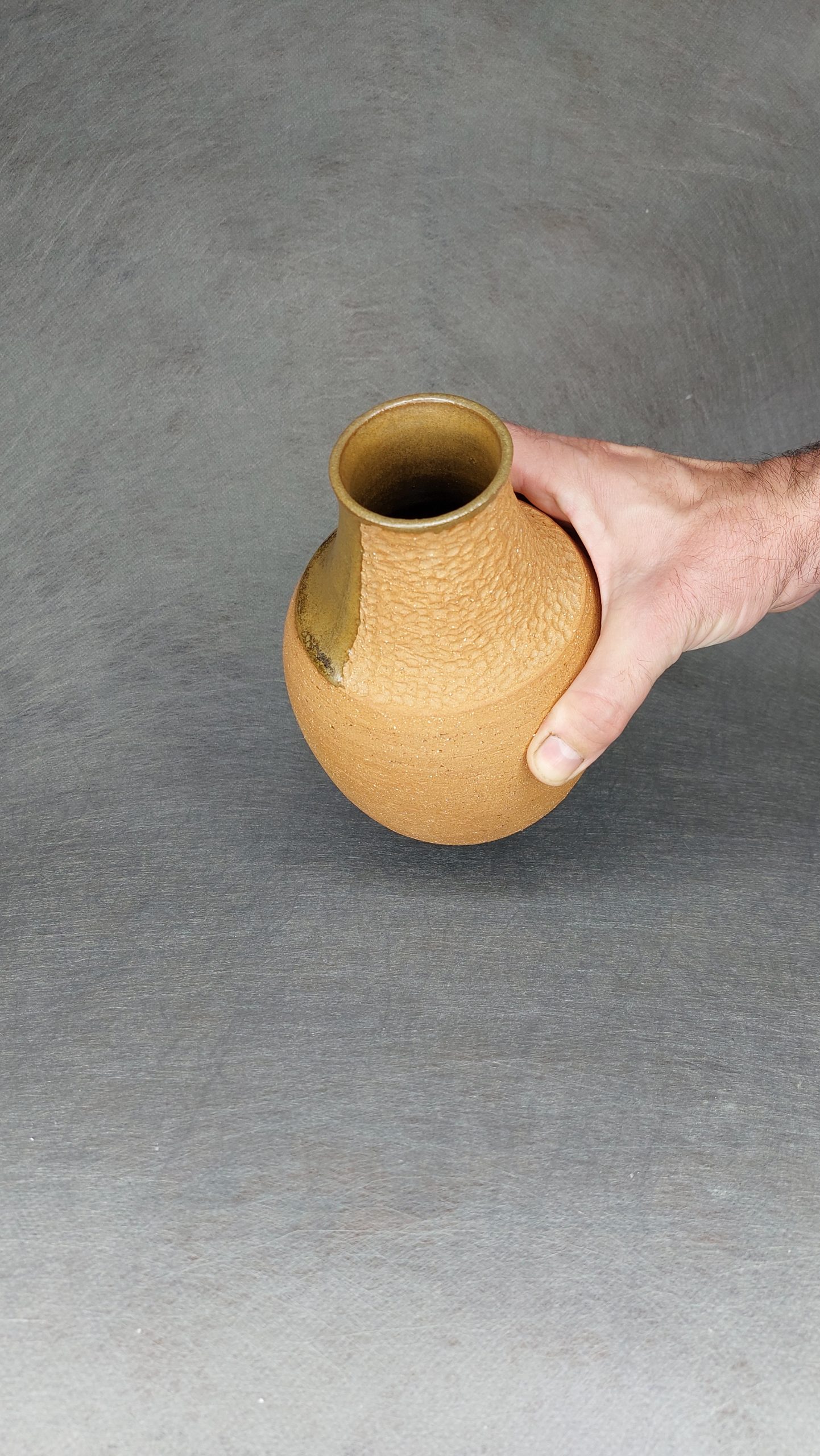 Vase fabriqué en grès de treigny chamotté, avec un surfaçage sur le col. Sa base et son pied sont texturés lui donnant ainsi une silhouette élégante. L’émail est appliqué avec soin uniquement sur le col et à l’intérieur du vase nécessitant que votre œil s’y plonge pour en observer tous les détails.