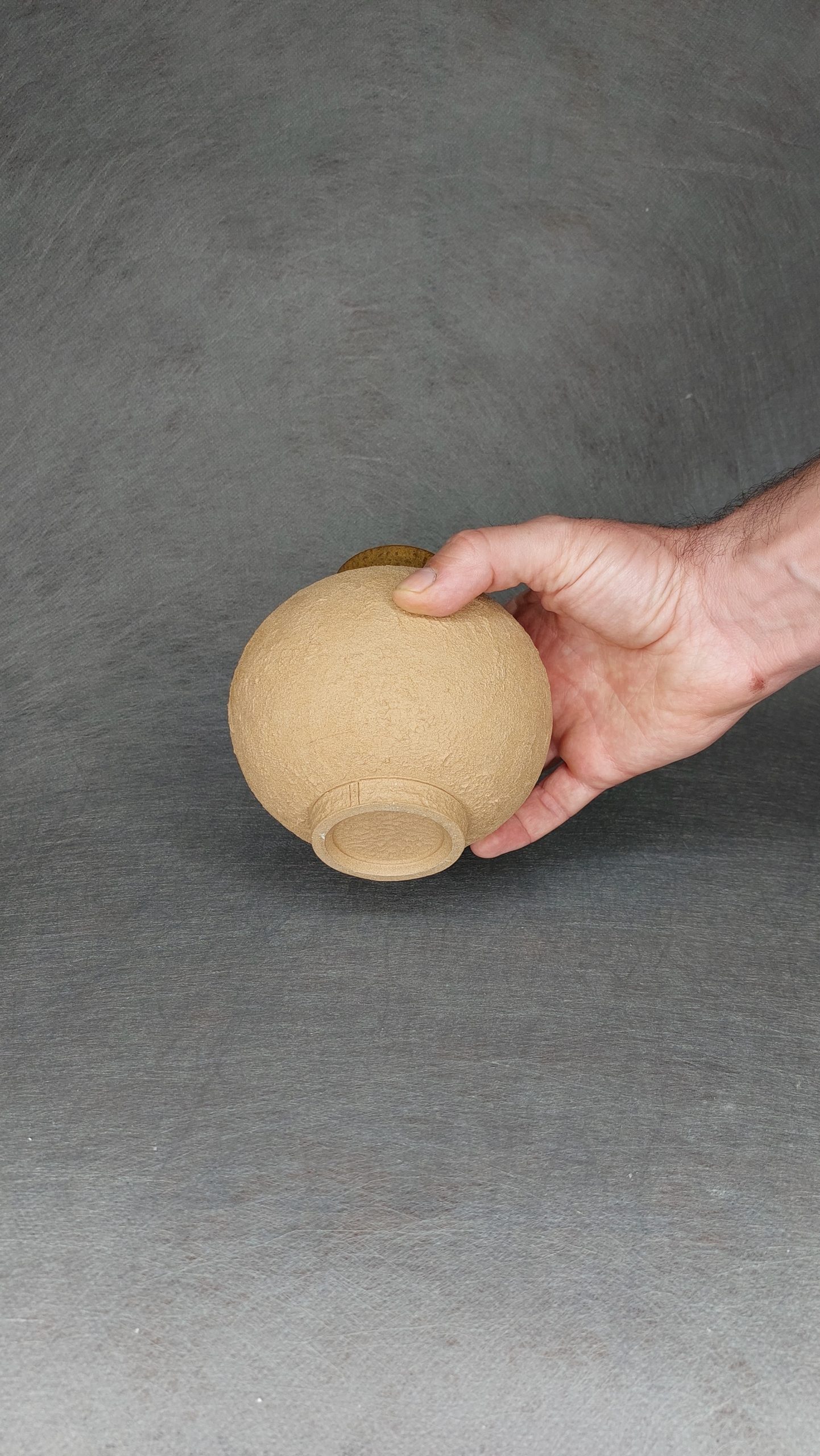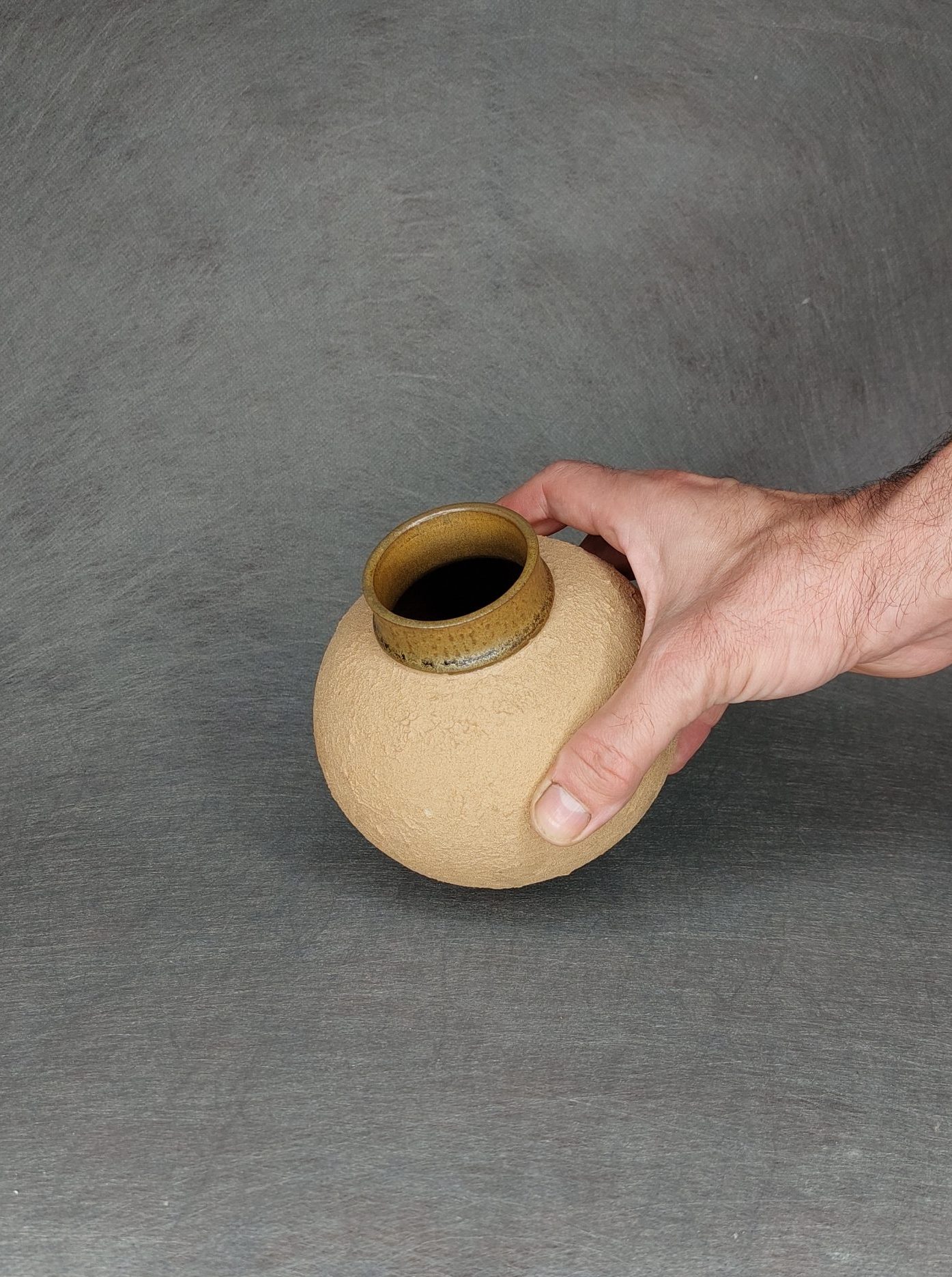 Vase fabriqué en grès de treigny chamotté, avec une application de barbotine sur le corps de la pièce. Sa base et son pied sont texturés lui donnant ainsi une silhouette élégante. L’émail est appliqué avec soin uniquement sur le col et à l’intérieur du vase nécessitant que votre œil s’y plonge pour en observer tous les détails.
