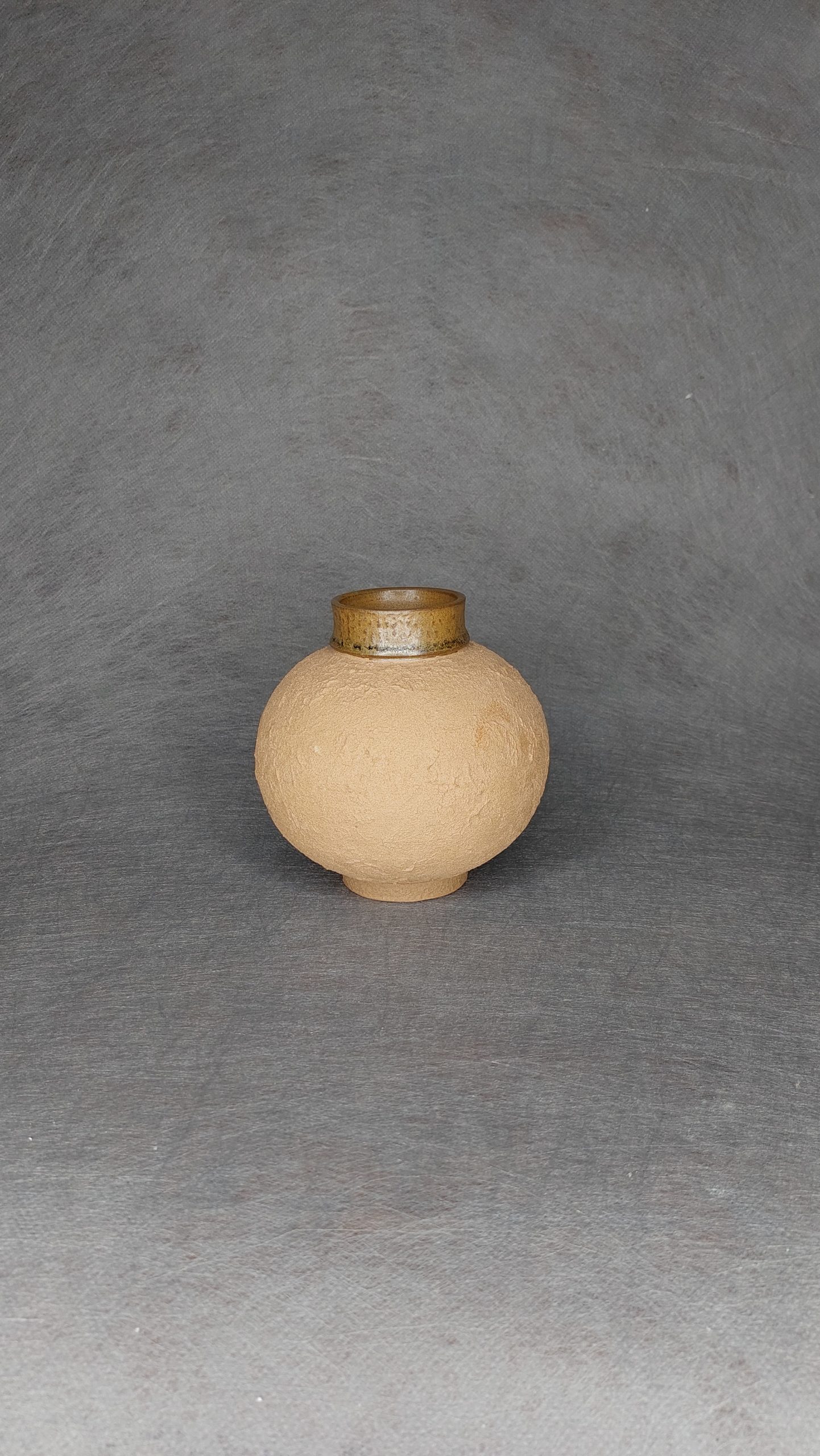 Vase fabriqué en grès de treigny chamotté, avec une application de barbotine sur le corps de la pièce. Sa base et son pied sont texturés lui donnant ainsi une silhouette élégante. L’émail est appliqué avec soin uniquement sur le col et à l’intérieur du vase nécessitant que votre œil s’y plonge pour en observer tous les détails.
